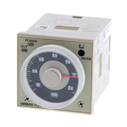 تایمر OMRON مولتی رنج و مولتی ولت 8 پایه از یک موتور کوچک تشکیل شده است که از طریق چرخ دنده یک دیسک را در مقابل میکروسوئیچ می چرخاند. محل دیسک در لحظه ی شروع به کار، قابل تنظیم است و پس از تنظیم زمان آن (توسط زایده ی خارجی) و تغذیه تایمر، موتور با دور ثابت به گردش در می آید و با گردش موتور، زمان تایمر شروع می شود. تایمر پس از گردش، به سبب برخورد با زایده دیسک، متوقف می شود و به میکروسوئیچ داخلی فرمان می دهد، آنگاه کنتاکت های تایمر عمل می کنند و اتوماتیک قطع می شود و موتور از کار می افتد. زمان وصل این تایمرها از دهم ثانیه تا به طور دائم قابل تنظیم است.